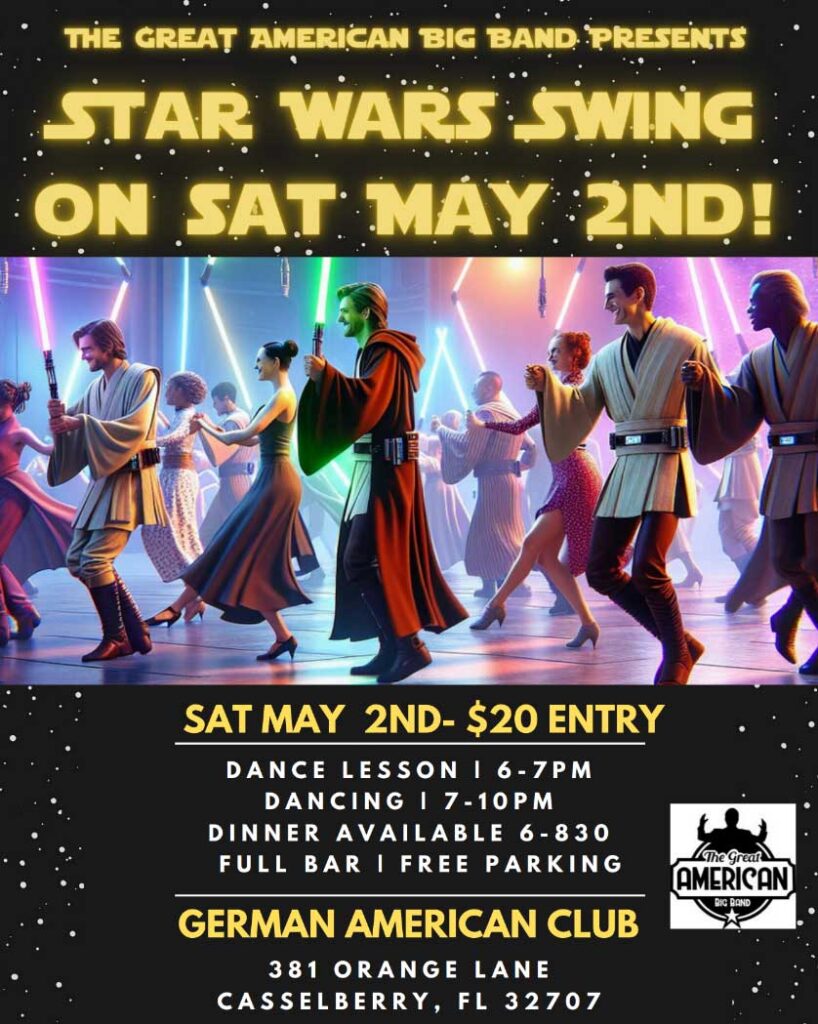 20 piece Great American BIG BAND’s Swing Dance, and FREE swing dance lesson from 6-7 pm. No reservations needed. Free parking.